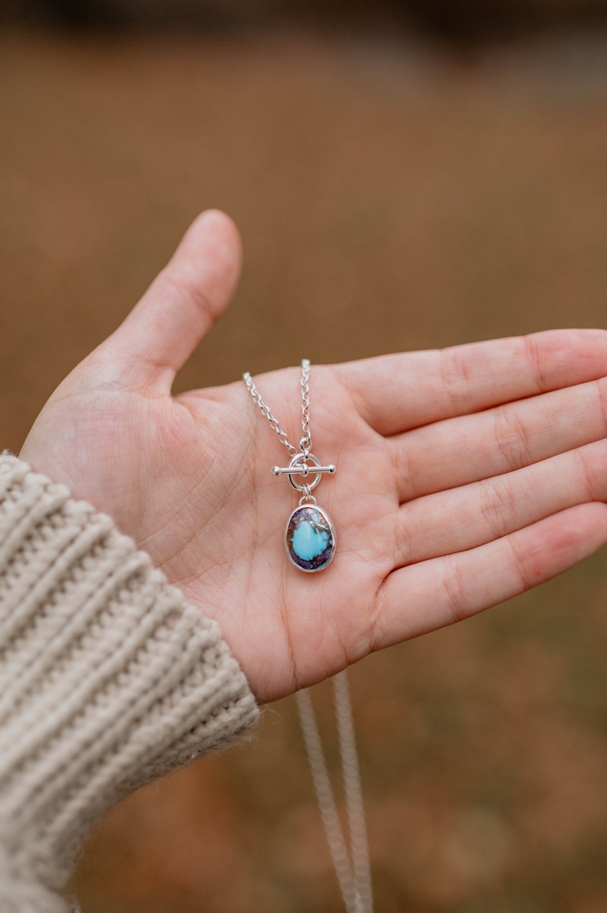 Set on a 16" chain, this stunning purple dahlia toggle necklace is the perfect staple to any outfit!