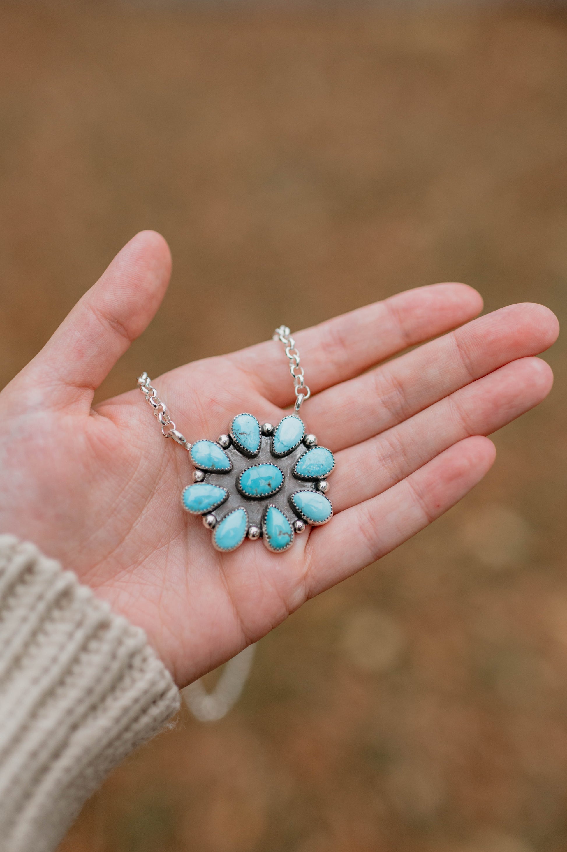 Made from genuine Sierra Bella Turquoise, set in a beautiful flower pattern on a 16" chain (can include an extender at no cost, leave it in the notes please)!